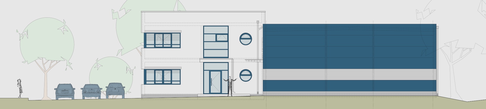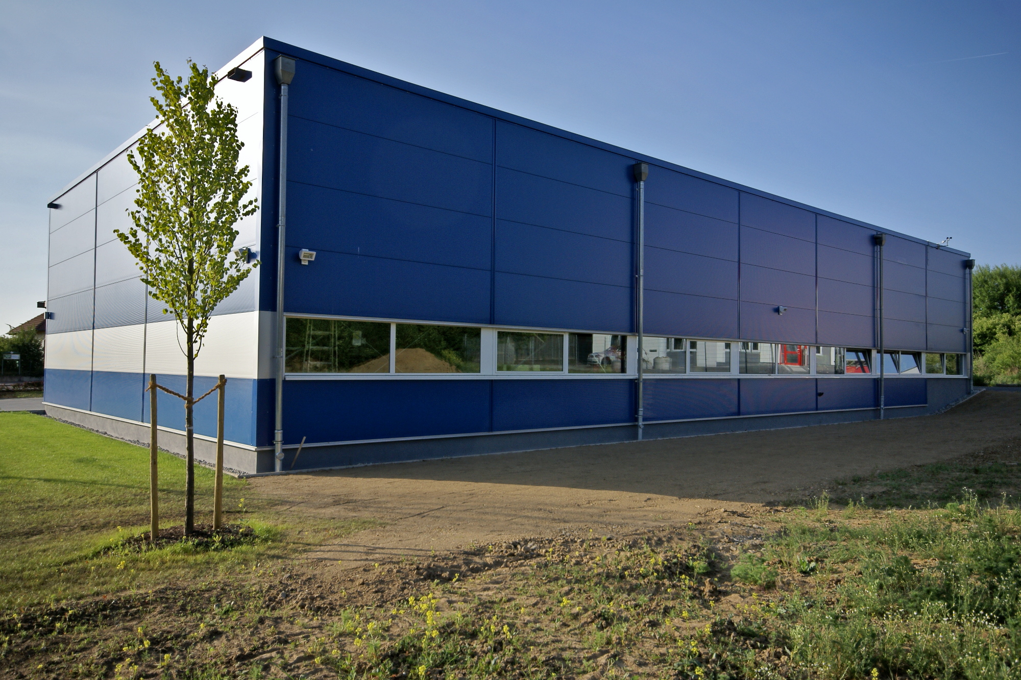 Projektiert wurde eine massiv errichtete Verwaltungseinheit mit Büros, Gemeinschaftsbereichen und Funktionsräumen und eine kombinierte Produktions- und Lagerhalle in Stahlbauweise.