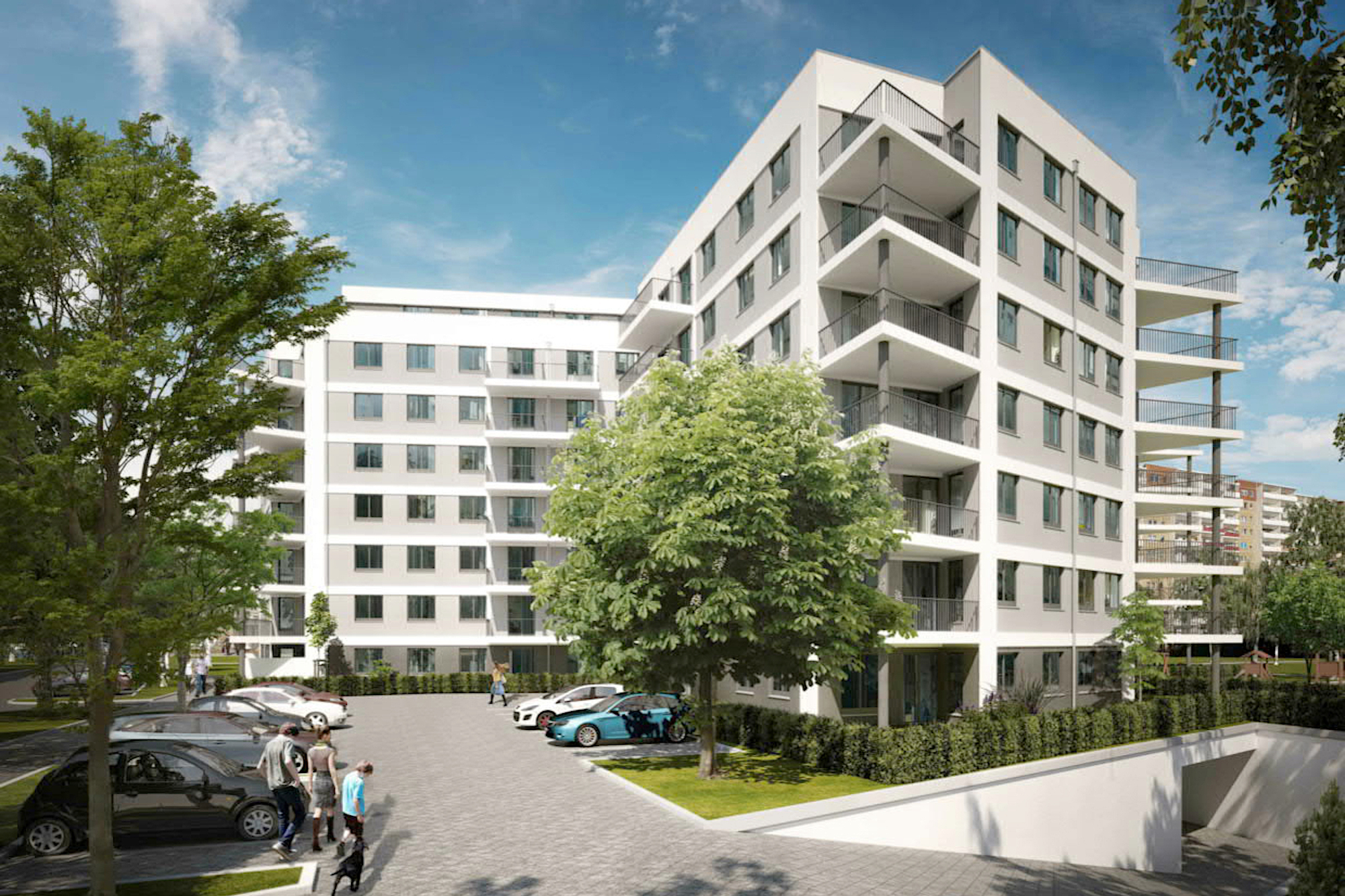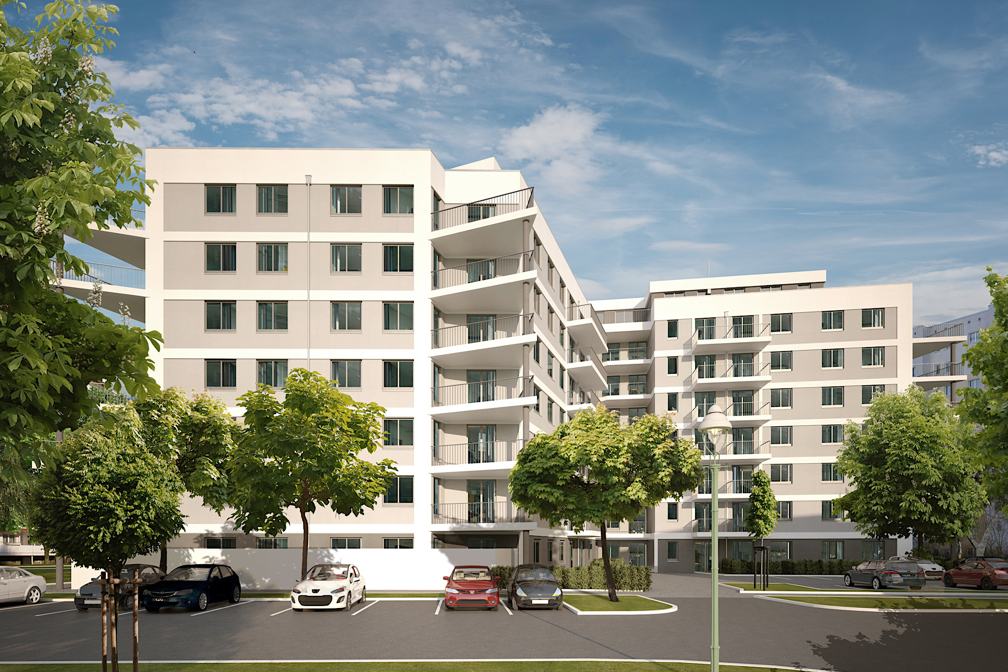 Aufgabe war die Planung eines Wohngebäudes mit rund 170 Wohneinheiten nach den Richtlinien der sozialen Förderung.