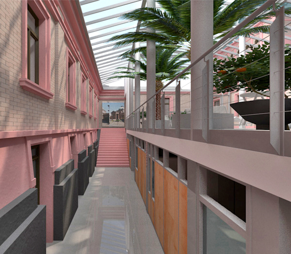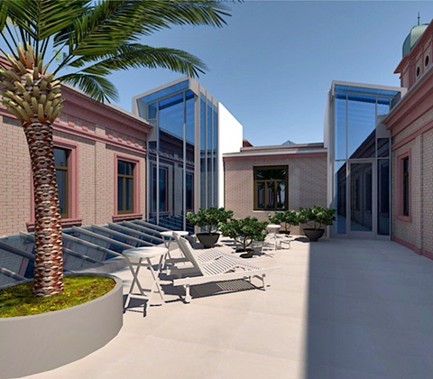 Aufgrund massiver Probleme durch aufsteigende Feuchtigkeit, die auch durch das Einbringen einer Horizontalsperre nicht zu beheben waren, sollte der zwischen Mittelbau und Seitenflügel Ost in den 50er Jahren errichtete Zwischenbau Ost abgebrochen und durch einen Neubau ersetzt werden.