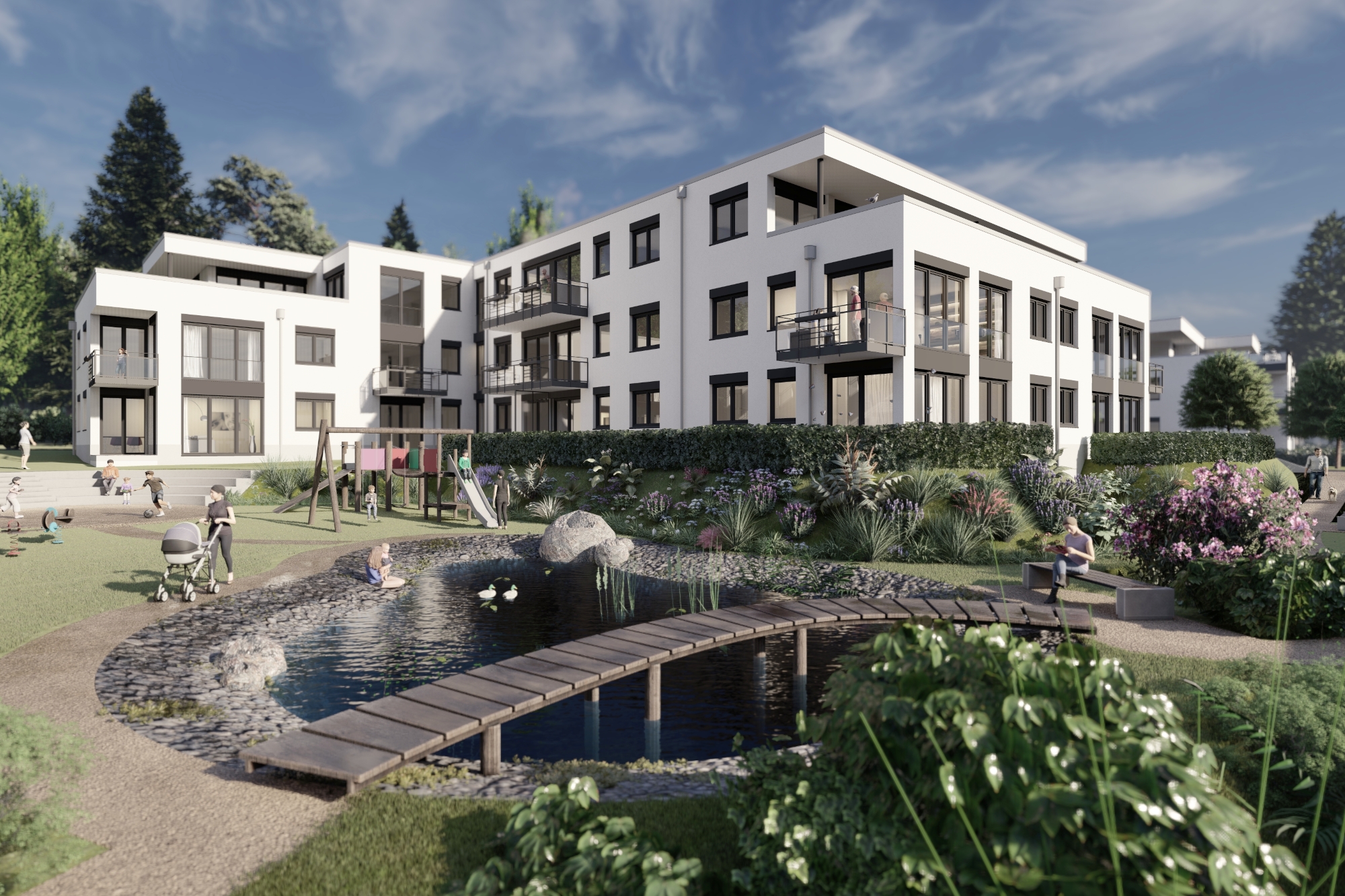 Hier wurden in einem ersten Bauabschnitt im Jahr 2024 vier von neun Mehrfamilienhäuser mit insgesamt 171 Wohneinheiten fertiggestellt. Die einzelnen Gebäude sind individuell gestaltet, architektonische Elemente kehren aber in unterschiedlichen Formen wieder und geben der Siedlung ein einheitliches Aussehen.
