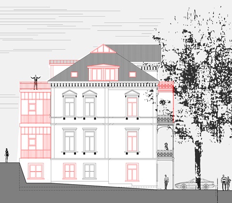 Ein Bauträger erwarb die Villa, die in einem geschlossenen Villenviertel einer Kurstadt steht, zum Zweck der Aufteilung in hochwertige Eigentumswohnungen. Diese Nutzung erforderte tiefgreifende Eingriffe in die bis dahin weitgehend unberührte Bausubstanz und eine vollständige Umgestaltung des gesamten Grundstückes.